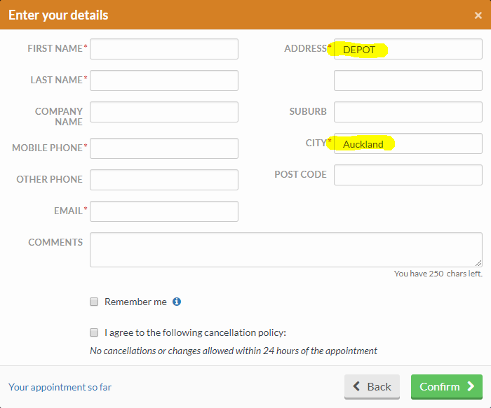 OPTION 1 - Click the BOOK NOW button at top. When you enter your address, just put "DEPOT" so we know that you want the clean at our Highbrook / East Tamaki location.